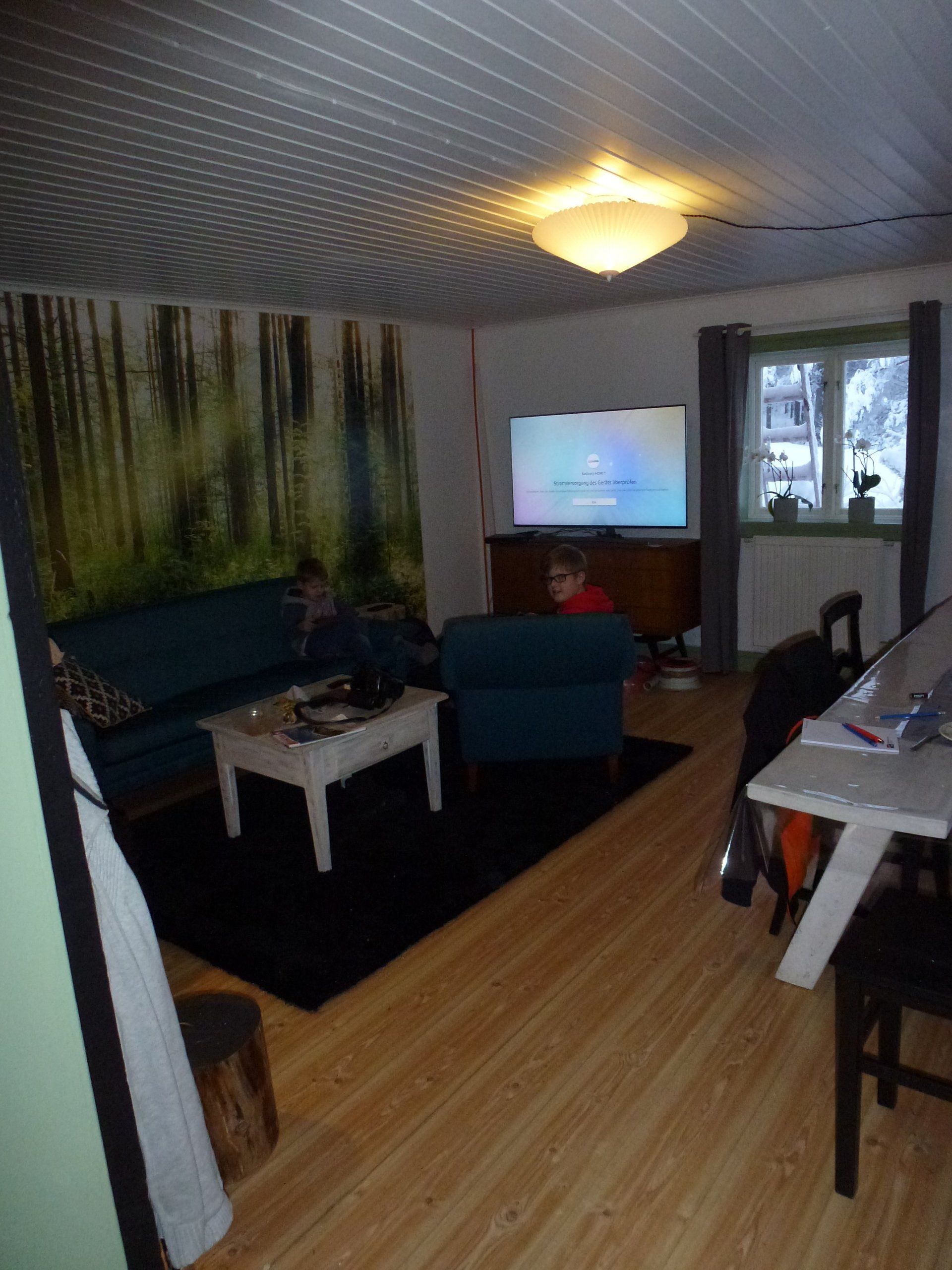 Deutsches Satellitenfernsehen auf einem große Fernseher gehören ebenso zum Haus, wie auch der gemütlich Holzofen in der Küche. Die Küche haben wir mit einem SMEC Ofen im Retro-Design ausgestattet. Der von den Vorgängern selbstgebaute Esstisch besticht durch seine rustikale und Größe. Hier finden problemlos alle Bewohner und einige Gäste platz. Auch eine Leseecke kann für ruhige Minuten genutzt werden.